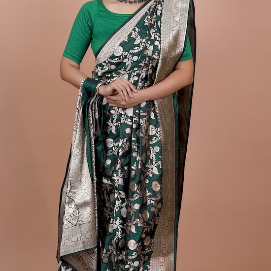 Bottle Green Pure Katan Silk Banarasi Handloom Saree with Zari work