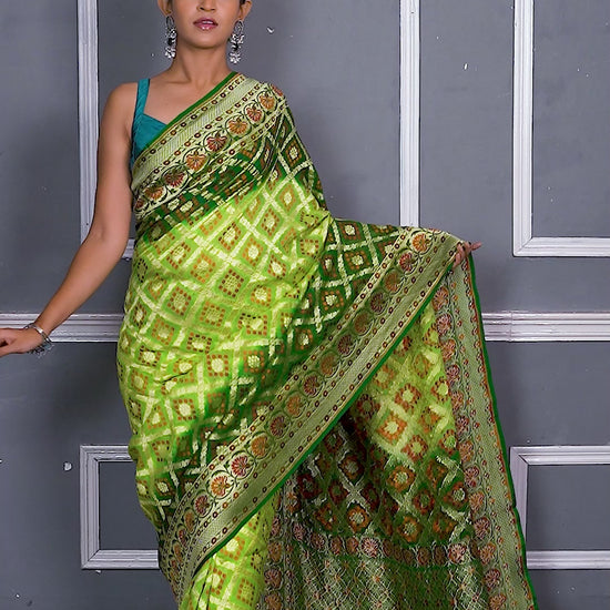 Green Bandhej Meena Pure Chiffon Silk Khaddi Georgette Banarasi Handloom Saree with Zari work
