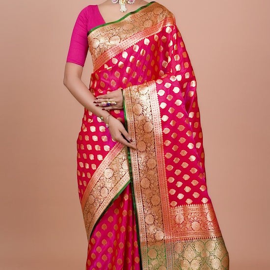 Green-Pink Banarasi Semi-Silk Saree with Zari work