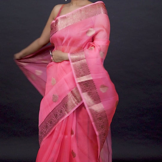 Pink Pure Organza Silk Banarasi Handloom Saree with Zari work