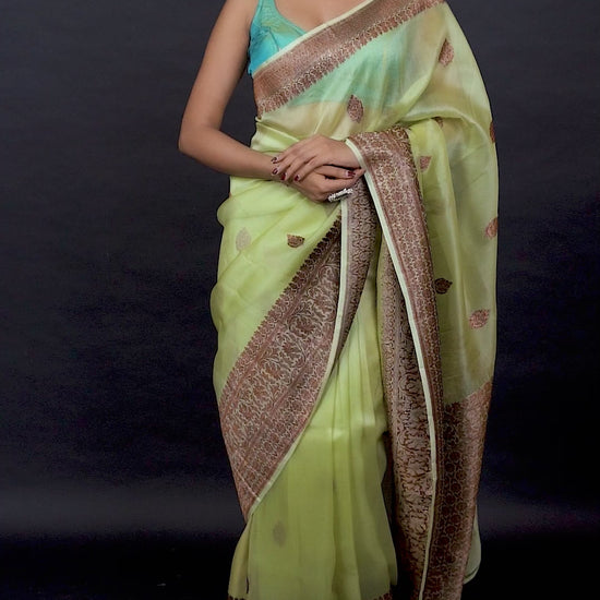 Pista Pure Organza Silk Banarasi Handloom Saree with Zari work