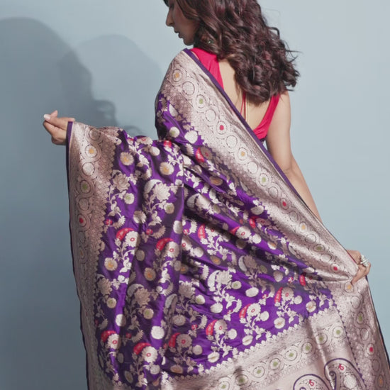 Purple Pure Katan Silk Banarasi Handloom Saree with Zari work